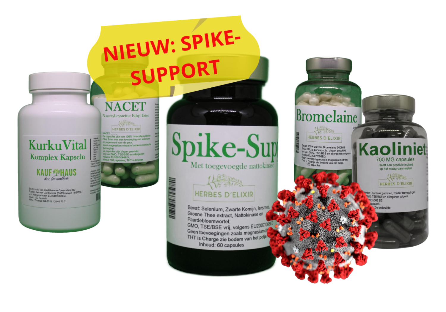 Een eerste stap in de formulering van een Spike-ontgiftingsprotocol is het gebruik van Nattokinase, Bromelaïne en Curcumine. Deze natuurlijke verbindingen werden gekozen vanwege hun bekende veiligheidsprofiel en de manier waarop ze samenwerken bij de afbraak van het Spike-eiwit. Het protocol voorziet in vier werkingsmechanismen: de proteolytische afbraak van het Spike-eiwit, de remming van ontstekingen, de oplossing van microtrombi en antistolling.
