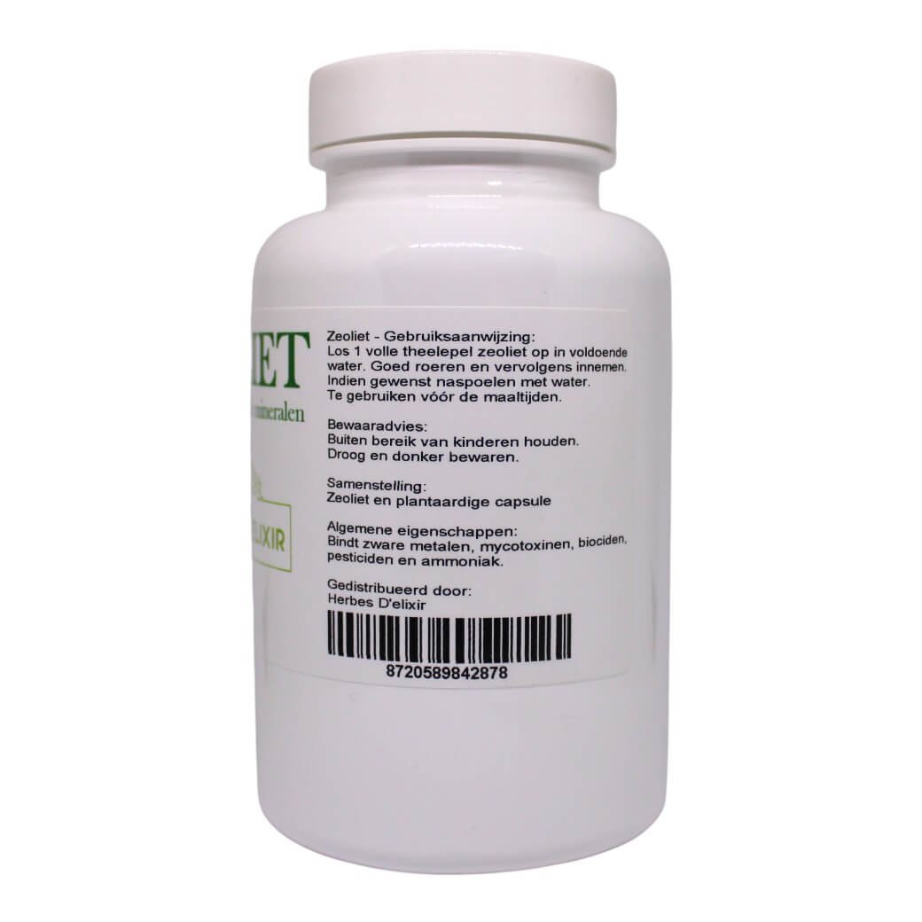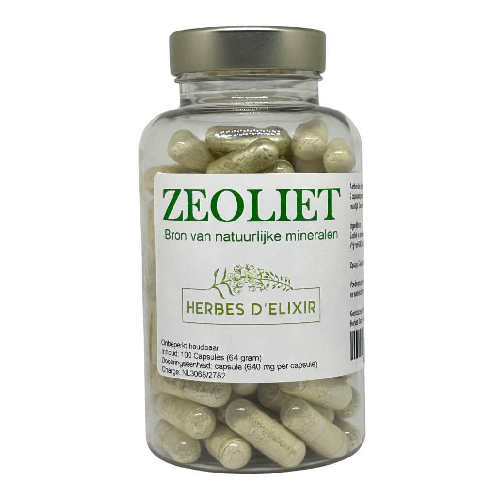 Zeoliet is een natuurlijk vulkanisch mineraal met een microporeuze structuur. Deze structuur werkt als een natuurlijke binder in het maagdarmkanaal en kan bijdragen aan de natuurlijke uitscheiding van bepaalde stoffen via de ontlasting.